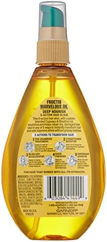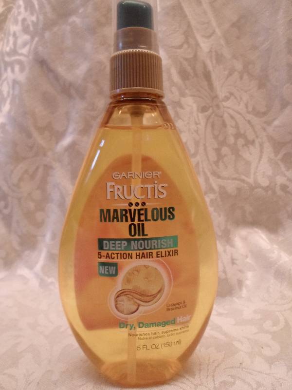 5 out of 5 stars. It is meant to instantly transform hair for supreme shine without leaving behind a greasy residue, this product costs around $7 but i got it on. Product title garnier fructis marvelous oil hair elixir, 5 oz. Work into wet or dry hair, leave in overnight to restore softness. 2 garnier fructis haircare triple nutrition miracle dry oil hair body face g8. Add 1 or 2 drops to your conditioner to help get rid of pesky knots and tangles. A little goes a long way so it will last forever. Marvelous oil can be used in any of 5 ways! I also apply to my daughter's curls for a soft, shiney healthy look. Garnier skin and hair care fructis marvelous oil deep nourish 5 action hair elixir for dry and damaged hair, 5 fluid ounce 4.5 out of 5 stars 225 3 offers from $14.99 0 out of 5 stars, based on 0 reviews. Garnier fructis triple nutrition marvelous oil hair elixir 5 oz c34 c. Marvelous oil deep nourish (review).